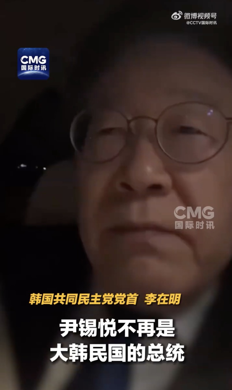 韩国最大在野党共同民主党在尹锡悦宣布“紧急戒严”后召集紧急议员会议。党首李在明呼吁韩国民众前往国会,保护国会。据CCTV国际时讯,李在明还表示,"从这一刻起,尹锡悦不再是韩国总统"。