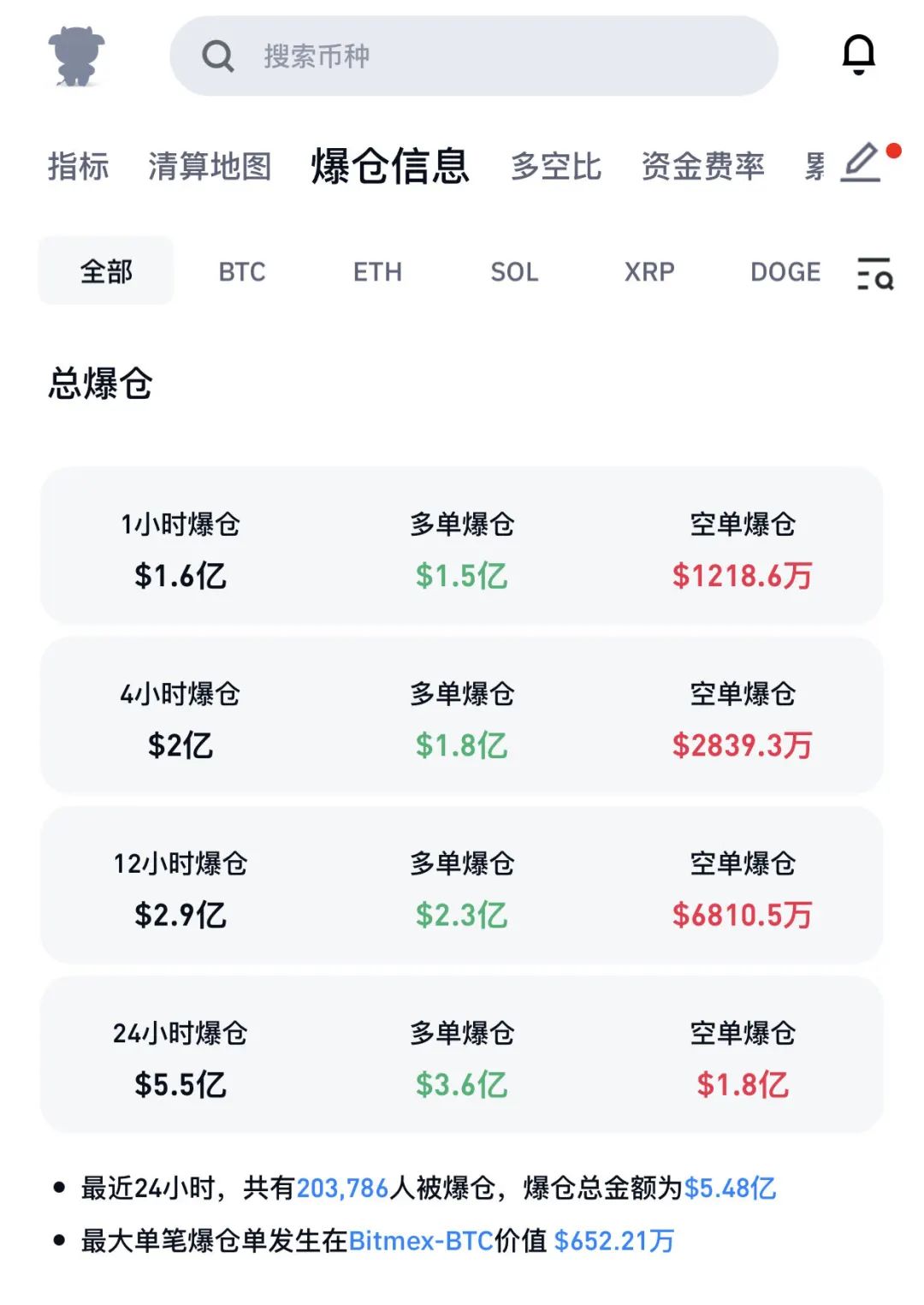 同时,Coinglass数据显示,过去24小时内,虚拟货币市场共有超20万人爆仓。