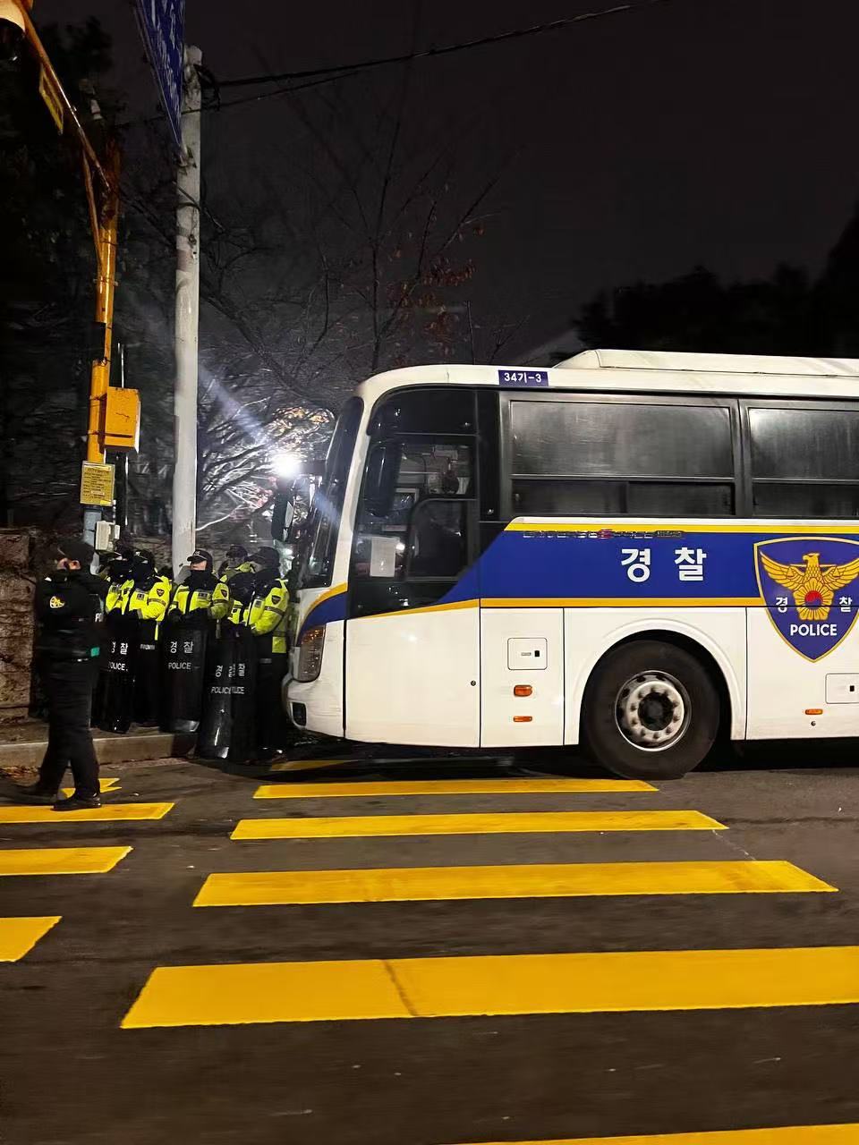 目前,韩国国会大门周围已被警车包围。(图源:社交媒体)