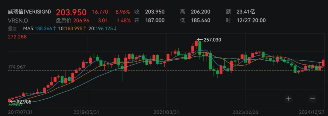 公开资料显示,VeriSign是一家全球领先的域名注册商,近年来由于面临监管压力和未来增长的不确定性,其股价表现较为平淡。然而,分析师认为巴菲特可能看到了该公司的投资价值。近期巴菲特和伯克希尔的投资管理团队曾表示,VeriSign的业务在全球互联网架构中扮演着不可替代的角色,未来仍有较大的增值空间。